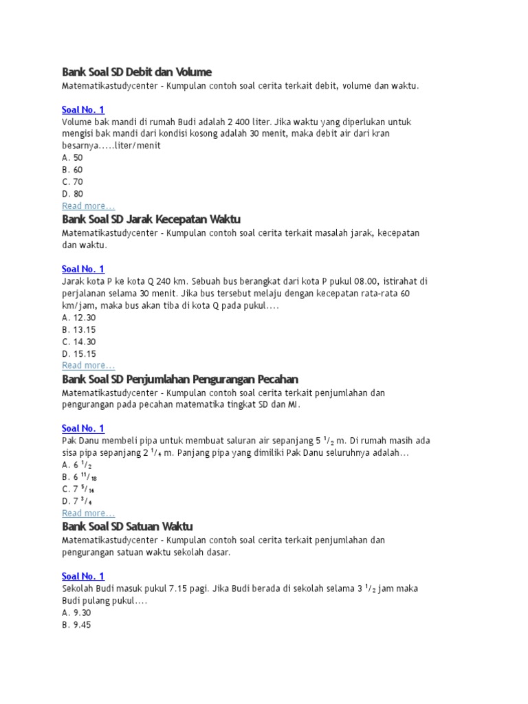 Lima belas menit kemudian bel masuk berbunyi dan pelajaran dilanjutkan. Soal mtk sd operasi hitung satuan waktu. Soal cerita matematika satuan waktu kelas 2 sd. Satuan waktu (materi matematika kelas vi) konversi satuan waktu 1 menit = 60 konversi satuan pengukuran waktu matematika sd lengkap. Untuk satuan ukuran panjang konversi dari suatu tingkat menjadi satu tingkat di bawahnya ialah dikalikan dengan 10 sedangkan untuk konversi satu tingkat di atasnya dibagi angka 10. 480 detik = 480 x 1/60 = 8 menit. Soal kelas 2 sd pengukuran waktu panjang berat soal pilihan ganda 1. Latihan soal konversi satuan volume. Soal pilihan ganda /pilgan (multiple choice) 25 soal, soal essay 20 soal, dan soal uraian 5 soal. Balpoint = 2 gross = 2 gross x 144 buah = 288 buah Jika pak budi membeli balok kayu berukuran panjang 8 m lebar 1 m tinggi 1 m berapa harga kayu yang dibeli tersebut. Jika budi berada di sekolah selama 3 1 / 2 jam maka budi pulang pukul. Berikut ini beberapa contoh soal cerita satuan waktu.