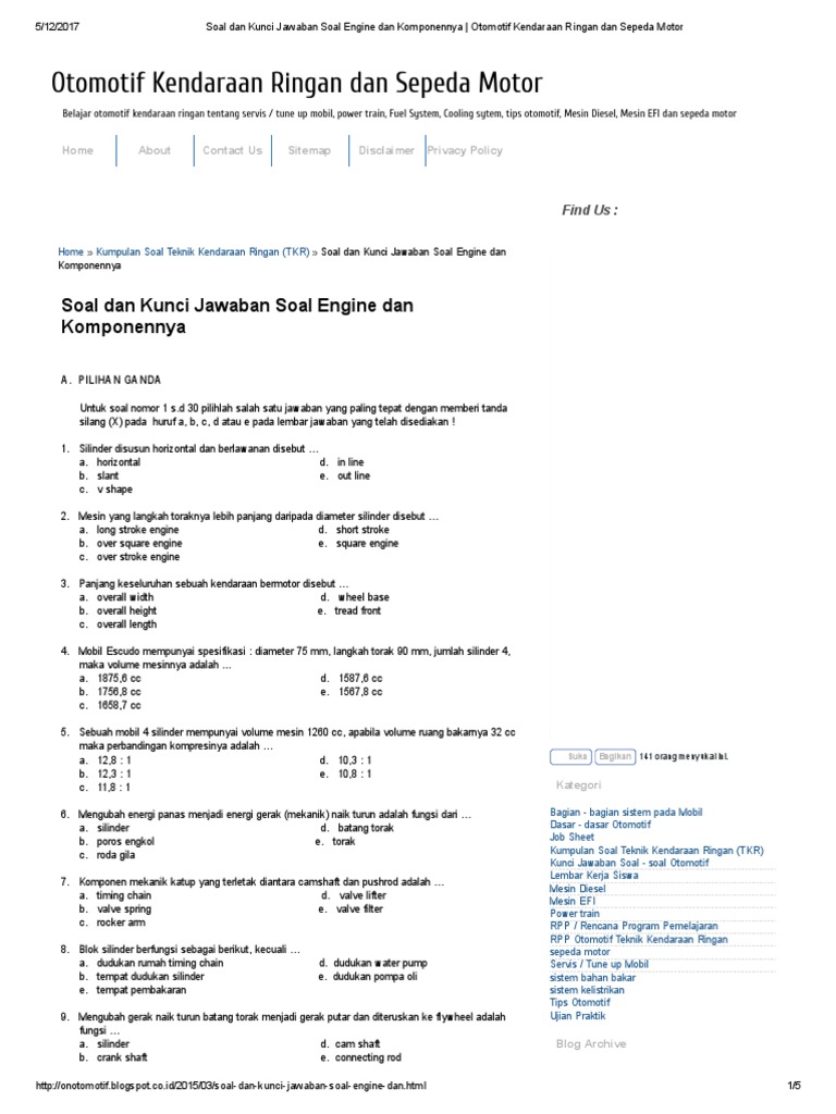 30 Soal Uas Teknologi Mekanik Perkakas Tangan Dan Kunci Jawabanya Teknik Pemesinan from 2.bp.blogspot.com Check spelling or type a new query. Maybe you would like to learn more about one of these? Soal essay teknik sepeda motor beserta jawabannya. We did not find results for: