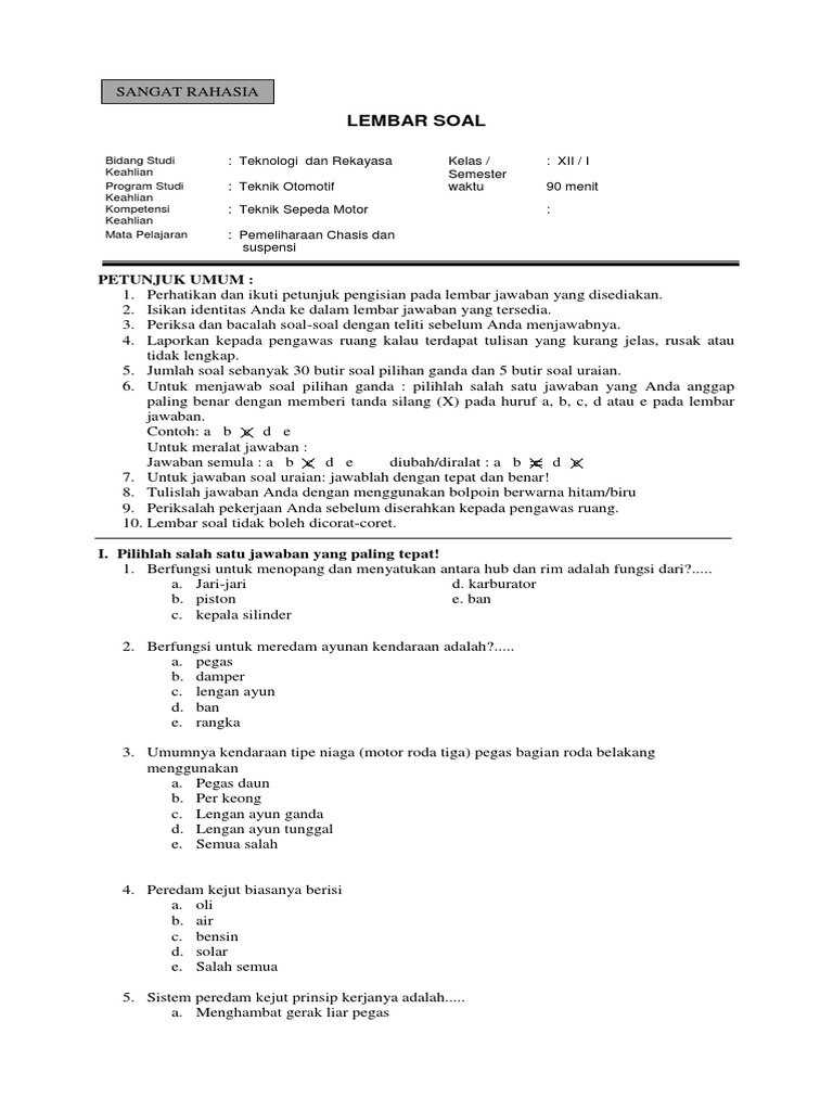 Check spelling or type a new query. Soal essay teknik sepeda motor beserta jawabannya. We did not find results for: Maybe you would like to learn more about one of these?